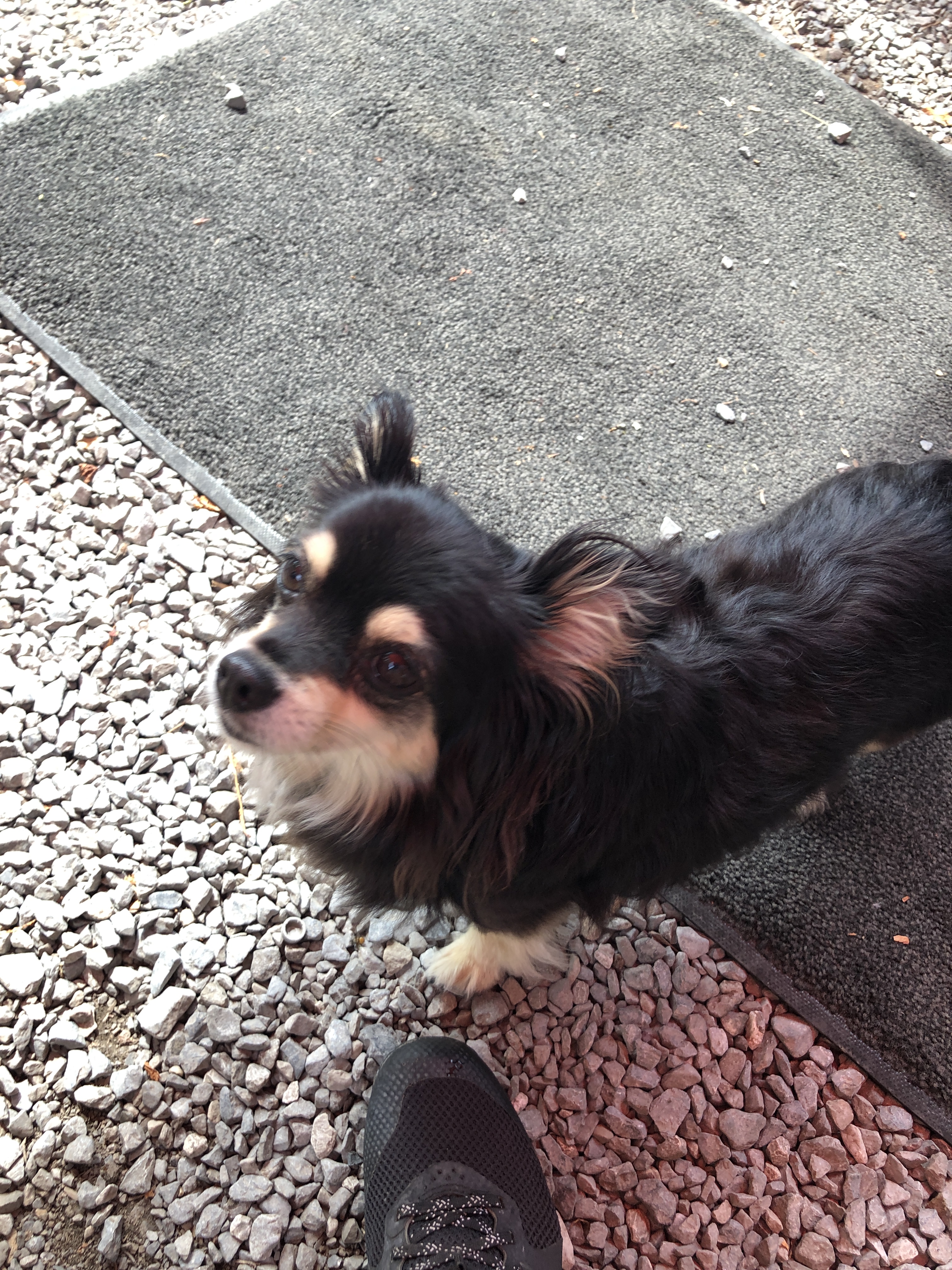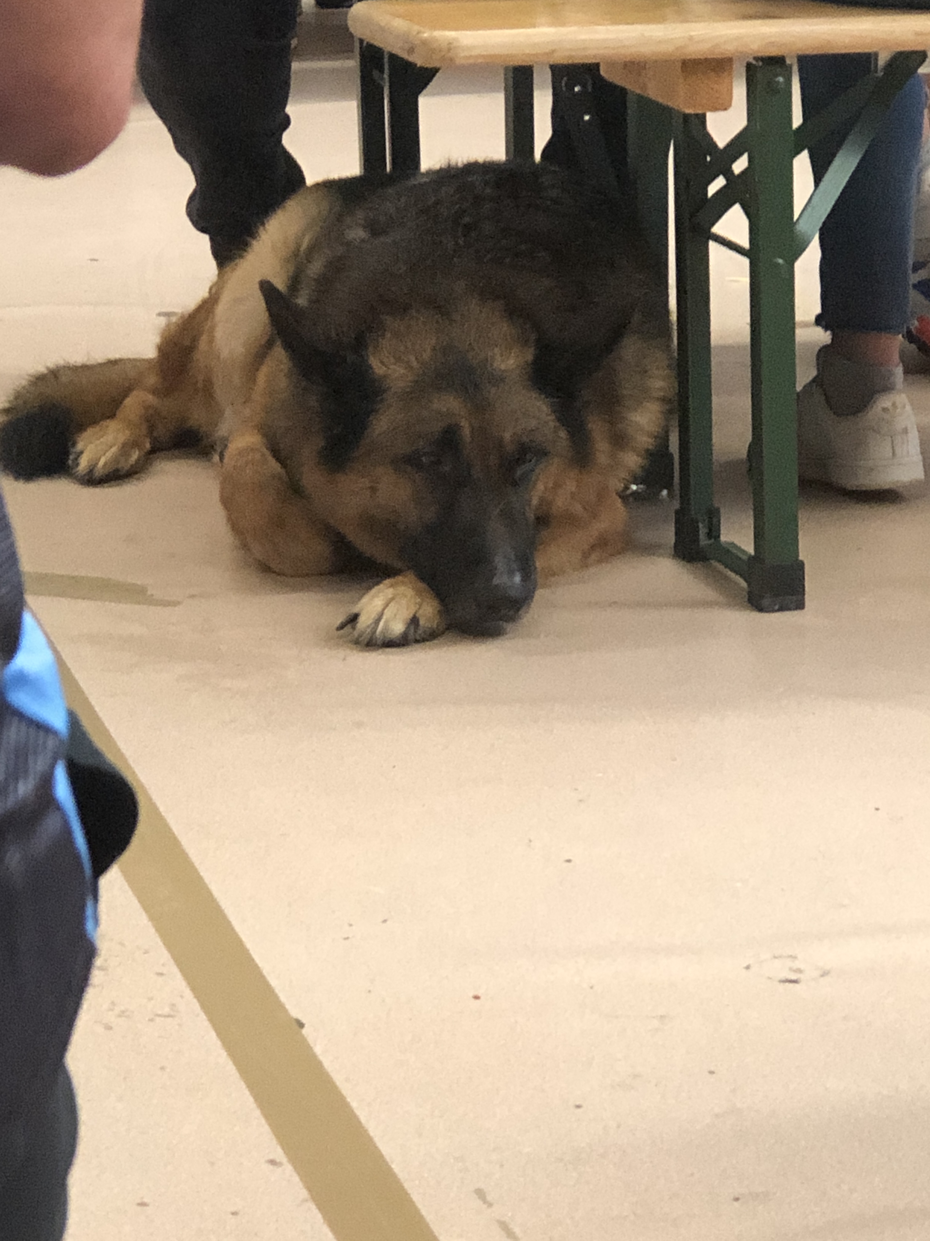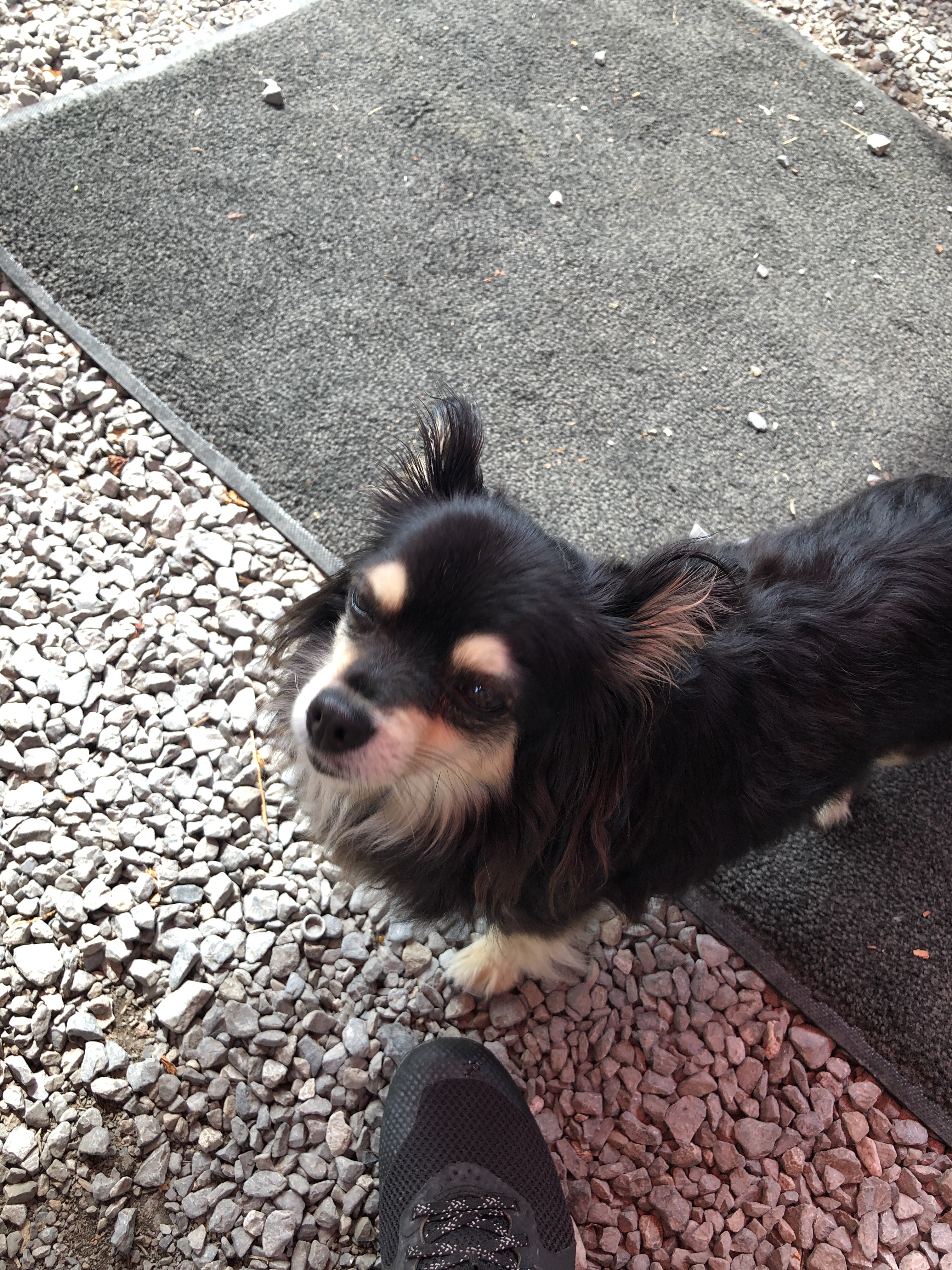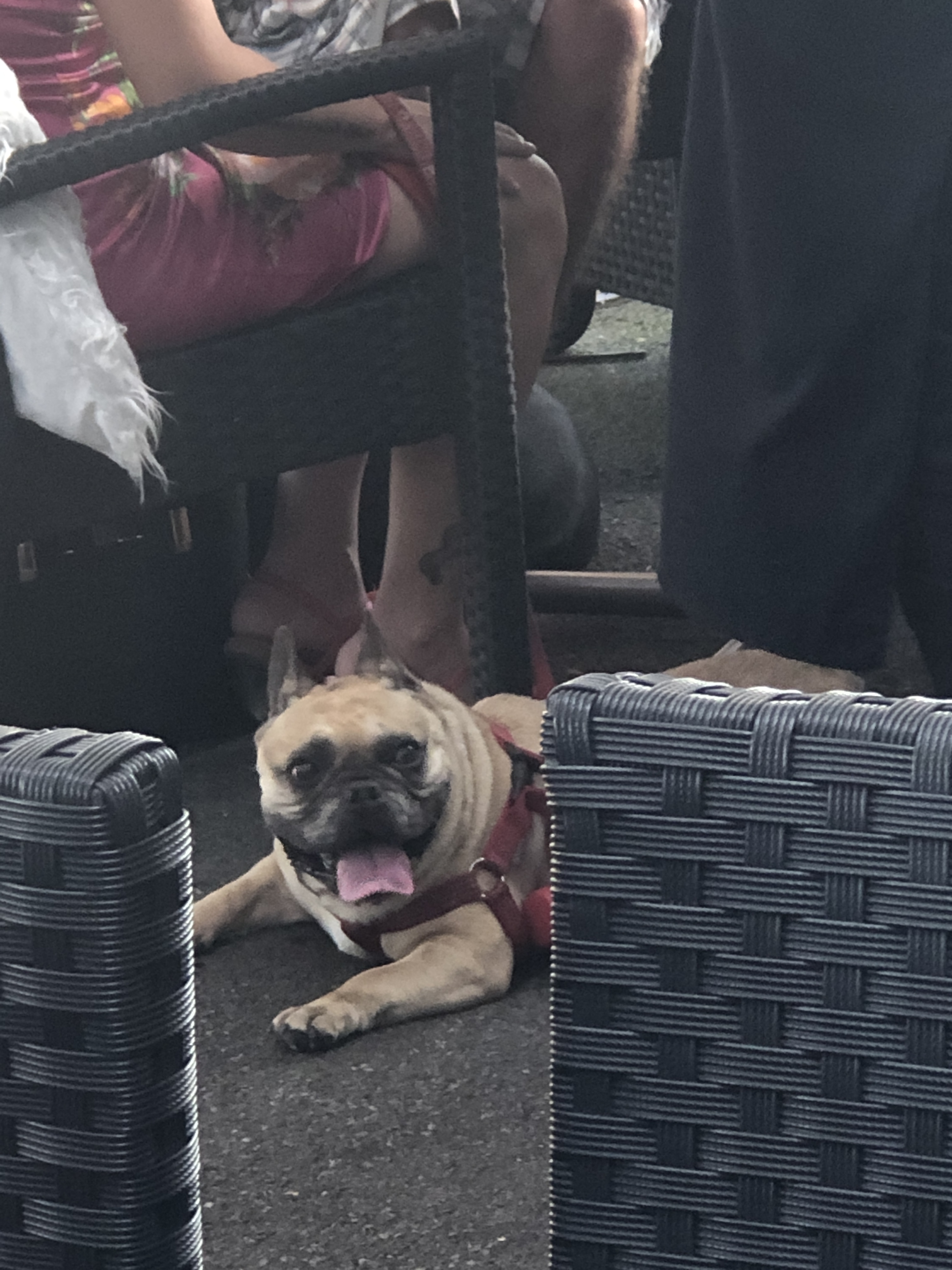 A very hot dog at dinner. His panting was so aggressively loud, I almost took my water glass over for him. He got a bowl of water eventually!