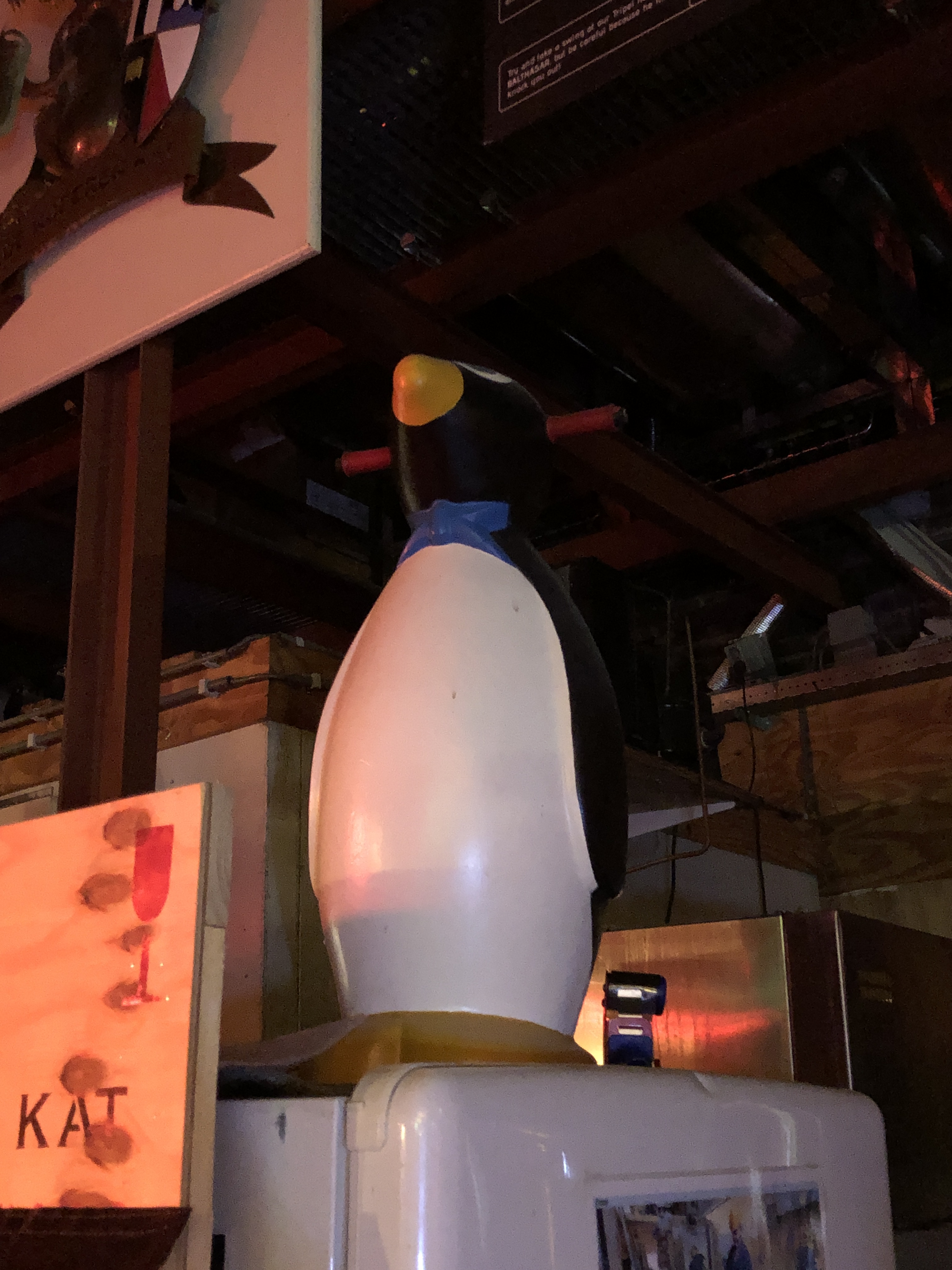 Bob the penguin is an old friend. He came home with us once or twice after a karaoke night. I tried to get a picture up close and personal with him, but he is now bolted down… I wonder why they’ve done that…
