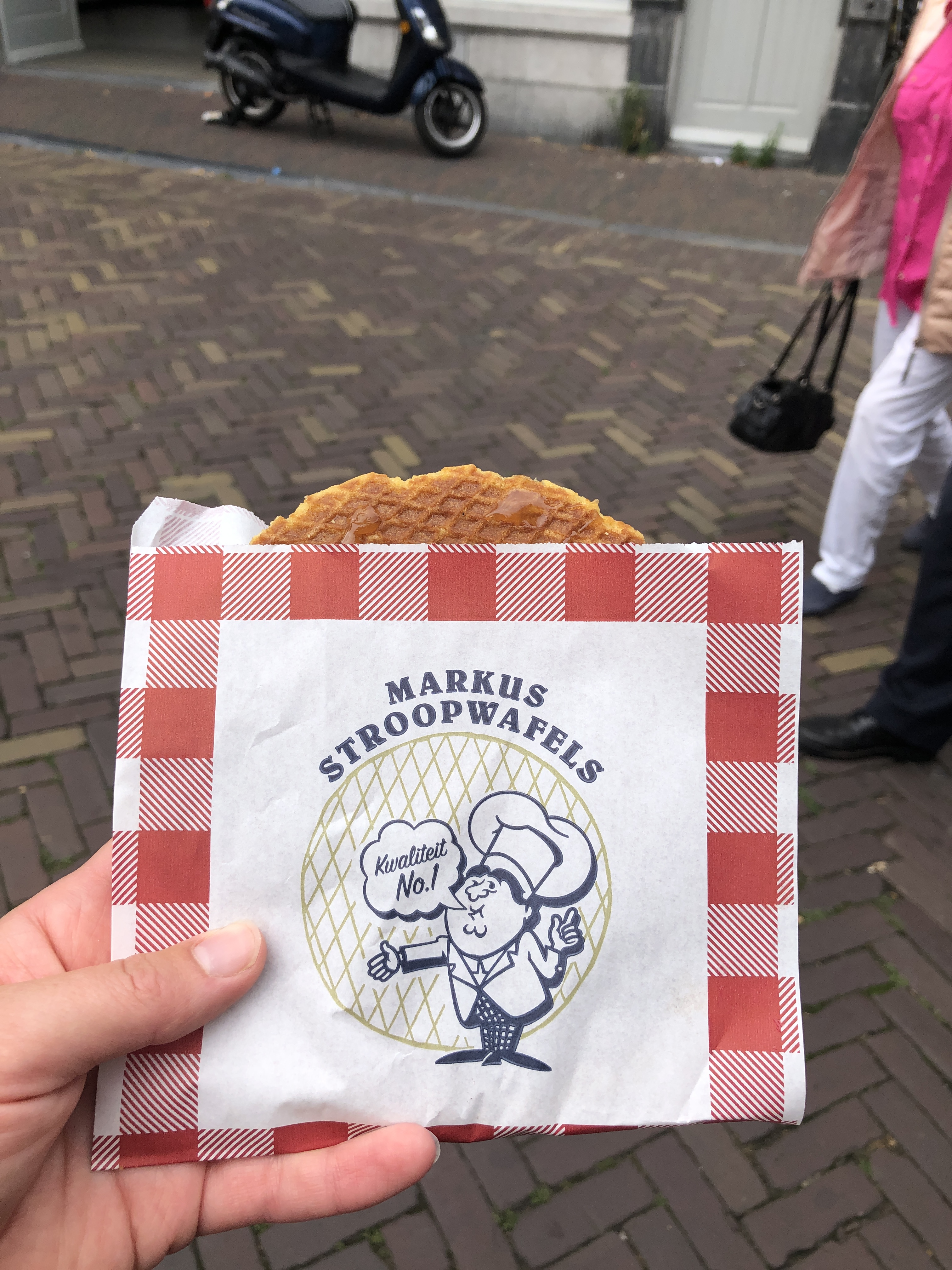 No trip to the Delft market is complete without eating a fresh stroopwafel after your Haring dangle. Saturday market.