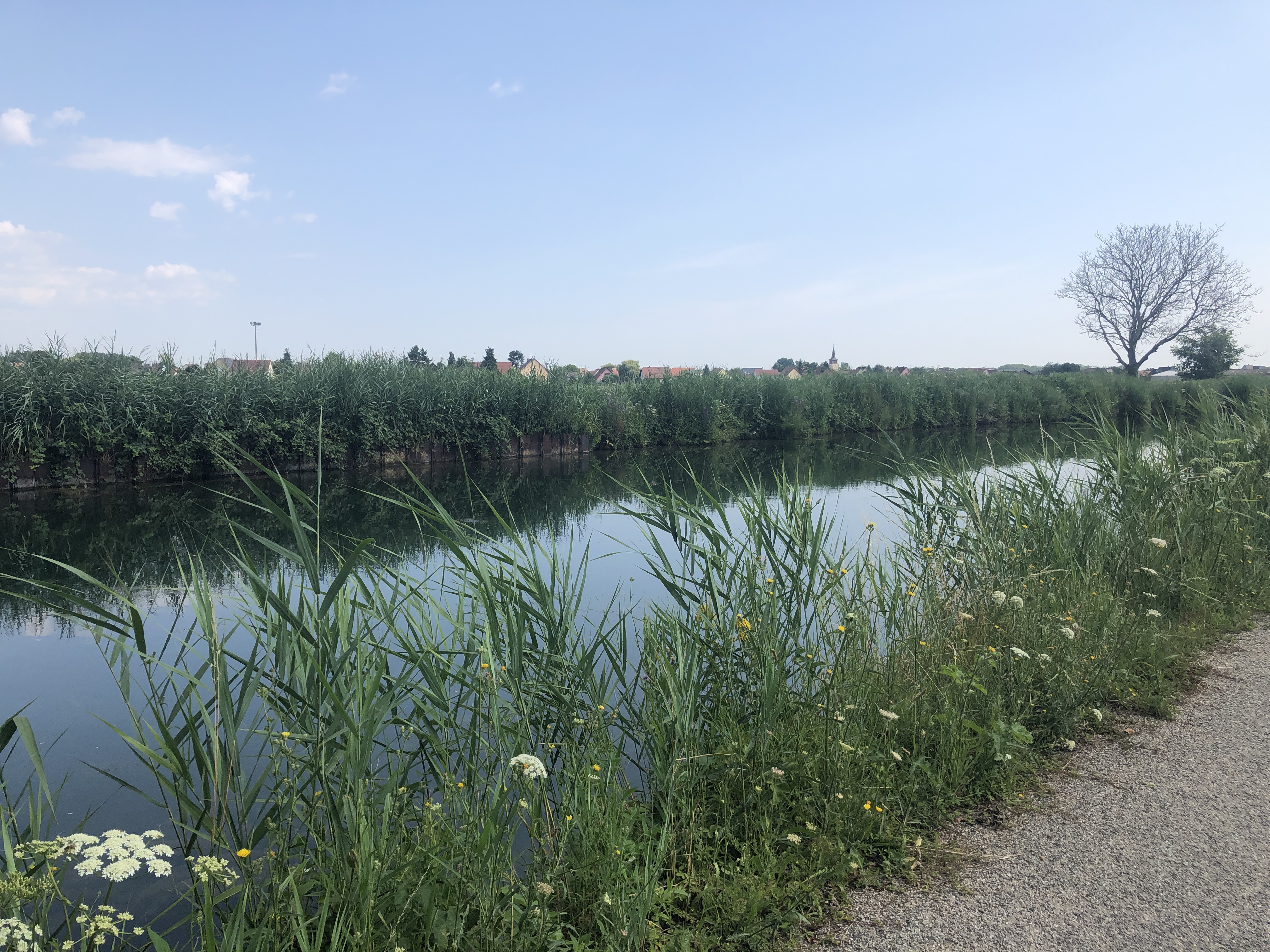 Today’s ride was glorious. I was riding next to a canal for about 98% of the time. Mostly on the Eurovelo route 15 again. This follows the Canal du Rhône au Rhin, which I just learned (when Googling how to spell it) is one of the most important watershed canals of the French waterways, connecting the Rhine to the Saône and the Rhône and thereby the North Sea and the Mediterranean. Most of the route was dedicated and paved bike path! Lovely.